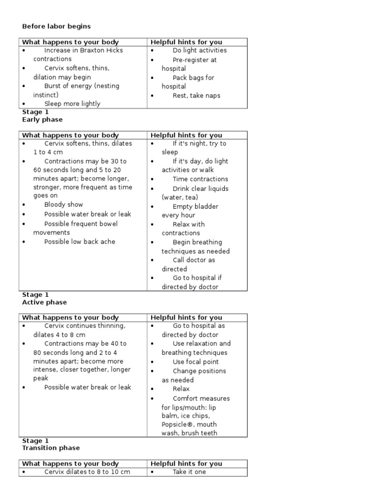 Later symptoms and signs that labor that labor is are the woman's water breaking, and when contractions begin. You may feel a little discomfort, maybe even a few light, irregular contractions. May 03, 2021 · the answer to how you feel right before labor varies by woman and by pregnancy. You might feel uncomfortable, but irregular, not very painful contractions or nothing at all. Did you have any signs before going into labor? Aug 20, 2020 · early and later symptoms and signs of labor and delivery are unique to each woman. Just before you go into labor, your cervix, the lower part of your uterus, will soften, thin out, and shorten. Effacement is often expressed in percentages. Your cervix must be 100 percent effaced, or completely thinned out, before a vaginal delivery. What symptoms did you have in the days before labor? This emptying may appear as diarrhea or vomiting. Contractions are the most common first sign of labor. Are there signs before labor begins?